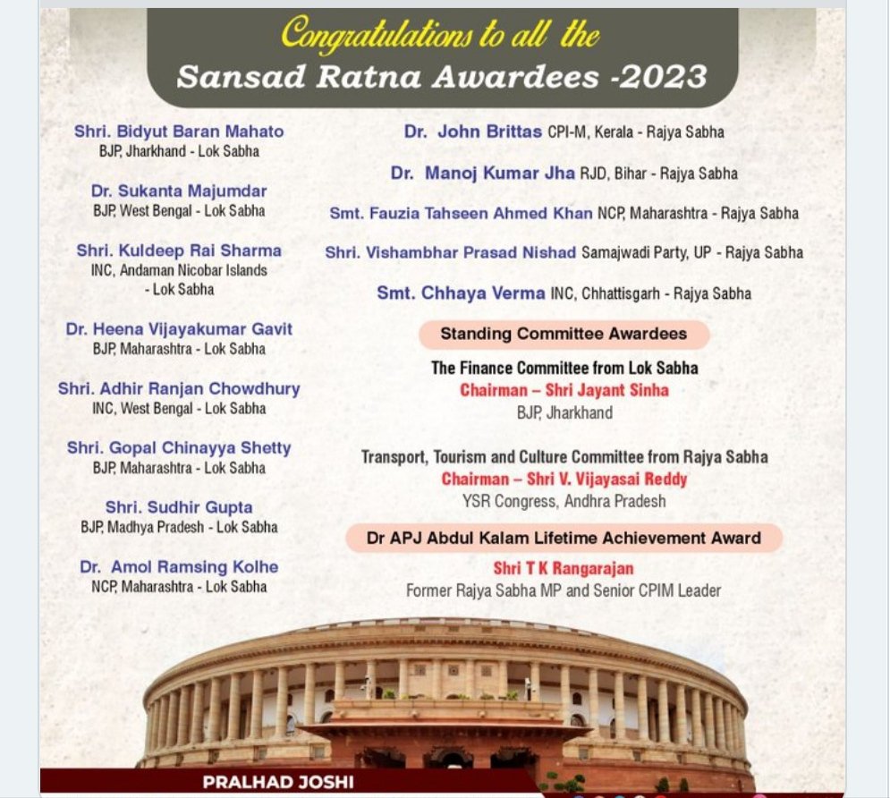“संसद रत्न पुरस्कार से सम्मानित होने वाले सांसद सहयोगियों को बधाई। वे अपनी समृद्ध अंतर्दृष्टि से संसदीय कार्यवाही को समृद्ध करते रहें।”