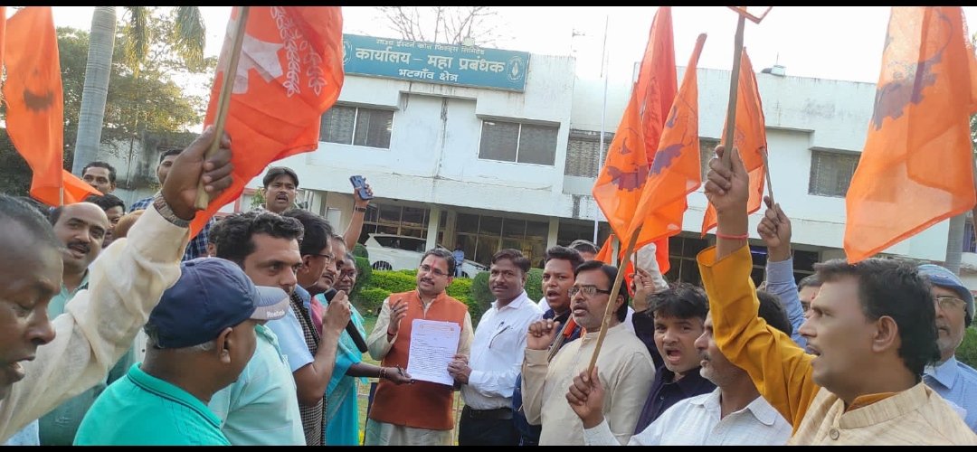श्रमिक संगठन बीएमएस ने वेतन समझौता 11 को जल्द लागू करने की मांग को लेकर के धरना प्रदर्शन किया