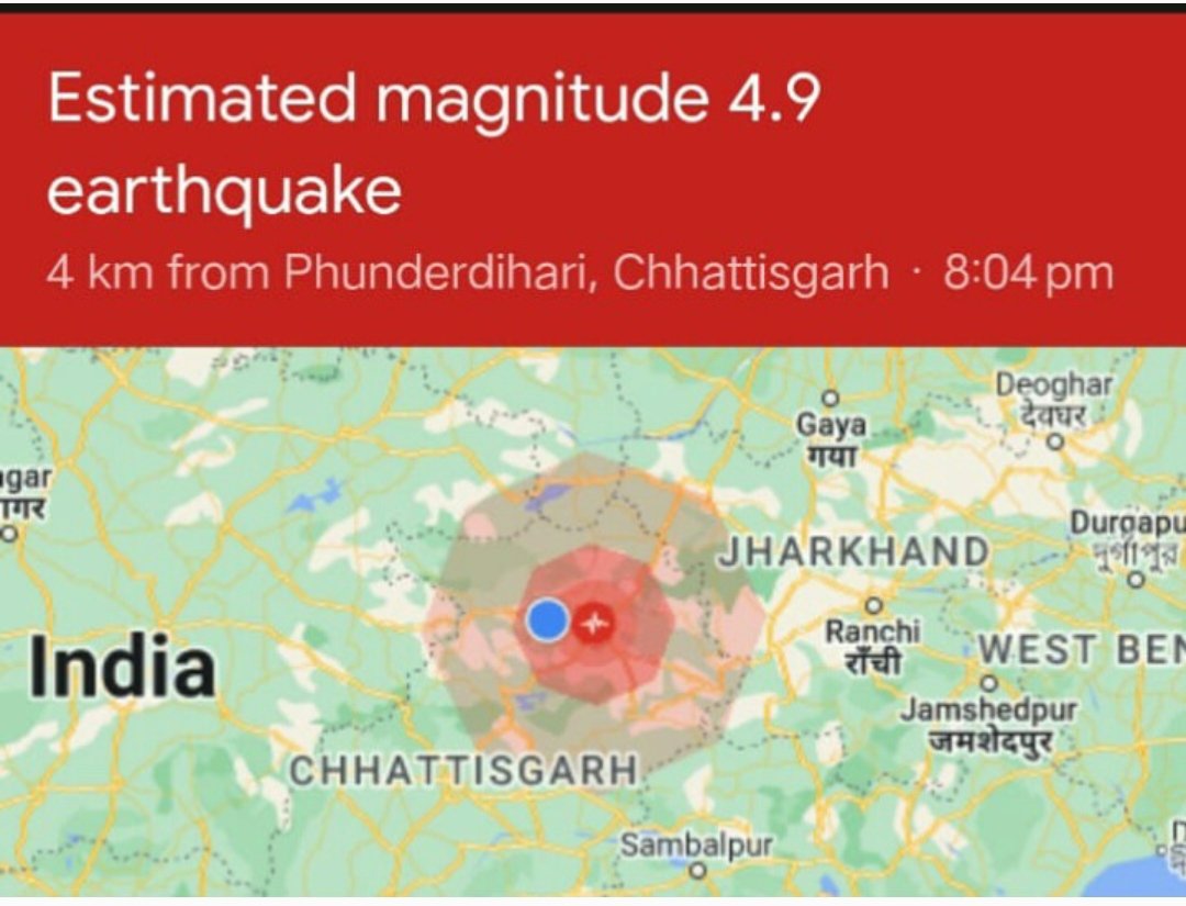 सरगुजा संभाग में भूकंप के 2 झटके महसूस किए गए, रिक्टर स्केल पर इसकी तीव्रता 4.9 आंकी गई।