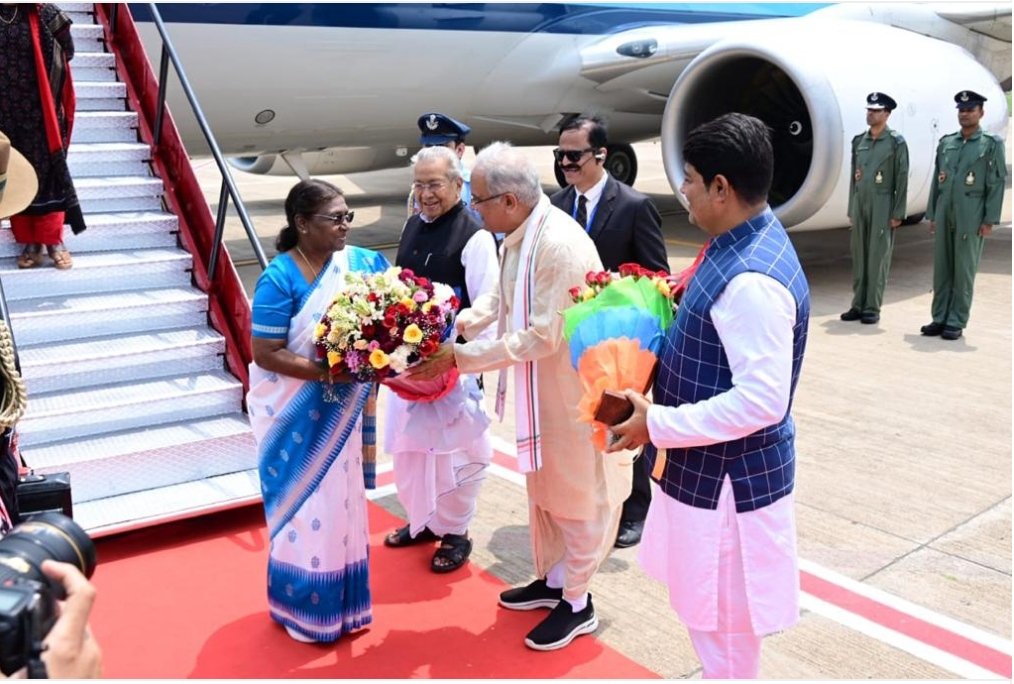 अफरोज खान रायपुर 31 अगस्त 2023। छत्तीसगढ़ के प्रथम प्रवास पर पहुंची राष्ट्रपति श्रीमती द्रौपदी मुर्मु का विमानतल पर छत्तीसगढ़ के राज्यपाल विश्व भूषण हरिचंदन एवं छत्तीसगढ़ के मुख्यमंत्री भूपेश बघेल ने आत्मीय स्वागत किया। राष्ट्रपति श्रीमती द्रौपदी मुर्मु आज पूर्वाह्न अपने दो दिवसीय छत्तीसगढ़ प्रवास पर राजधानी रायपुर के स्वामी विवेकानंद विमानतल पहुँची। जहां सरकार के द्वारा उनका स्वागत किया गया तथा विमानतल पर ही उन्हें गॉड आफ ऑनर दिया गया।