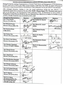 नई दिल्ली। सितंबर माह का वेतन नहीं मिलने से दुखी कोयला कर्मचारियों के लिए आज खुशी की खबर निकाल कर आई है उन्हें वार्षिक बोनस 85 हज़ार देने का निर्णय और समझौता प्रबंधन और श्रम संगठन के नेताओं के बीच हुआ। दिल्ली में कोल इंडिया और मजदूर संगठन बीएमसी,एटक,एचएमएस और सीटू के नेताओं के बीच बोनस के संबंध में आयोजित वार्ता पश्चात कोल इंडिया के मज़दूरों को इस वर्ष पी एल आर वार्षिक (बोनस) 85 हज़ार देना तय हुआ। 8 अक्टूबर 2023 को नई दिल्ली में आयोजित बैठक में प्रबंधन और श्रमिक नेताओं के बीच बोनस को लेकर लम्बी वार्ता हुईं और 85 हजार रूपए बोनस देना तय हुआ जो पिछले वर्ष से 85 सौ ज्यादा है। खास बात ये है की ठेका मजदूरों को भी बोनस दिया जाना है इसका निर्णय 19 अक्टूबर को होने वाले सीएमडी मीट में किया जाएगा।