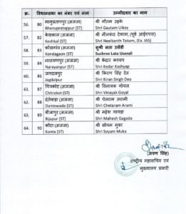 रायपुर। छत्तीसगढ़ में चुनाव का ऐलान होते ही भारतीय जनता पार्टी ने आज अपने 60 उम्मीदवारों की सूची जारी कर दी। भाजपा की सूची में केंद्रीय मंत्री और सांसदों को भी विधानसभा का उम्मीदवार बनाया गया है।