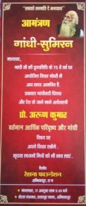 अम्बिकापुर । महात्मा गांधी की 75 वीं पुण्यतिथि के अवसर पर सरगुजा की सामाजिक संस्था रेहाना फाउंडेशन के द्वारा” गांधी सुमिरन “विचार गोष्ठी का आयोजन 17 अक्टूबर को शाम 6 बजे से अंबिकापुर के प्रतापपुर नाका में स्थित होटल पंचानन में किया जा रहा है। इस कार्यक्रम में प्रमुख वक्ता के रूप में प्रख्यात देश के जाने-माने अर्थशास्त्री प्रोफेसर अरुण कुमार “वर्तमान आर्थिक परिदृश्य और गांधी ” विषय पर अपना व्याख्यान प्रस्तुत करेंगे। ज्ञात हो की रेहाना फाउंडेशन के द्वारा प्रतिवर्ष अंबिकापुर में गांधी सुमिरन कार्यक्रम का आयोजन किया जाता है जिसमे देश के प्रख्यात गांधी विचारक, विद्वान और चिंतक को आमंत्रित किया जाता है। रेहाना फाउंडेशन के जावेद खान तथा दिनेश शर्मा ने गांधी सुमिरन_विचार गोष्ठी में शामिल होने हेतु सभी प्रबुद्धजनों को आमंत्रित किया है।
