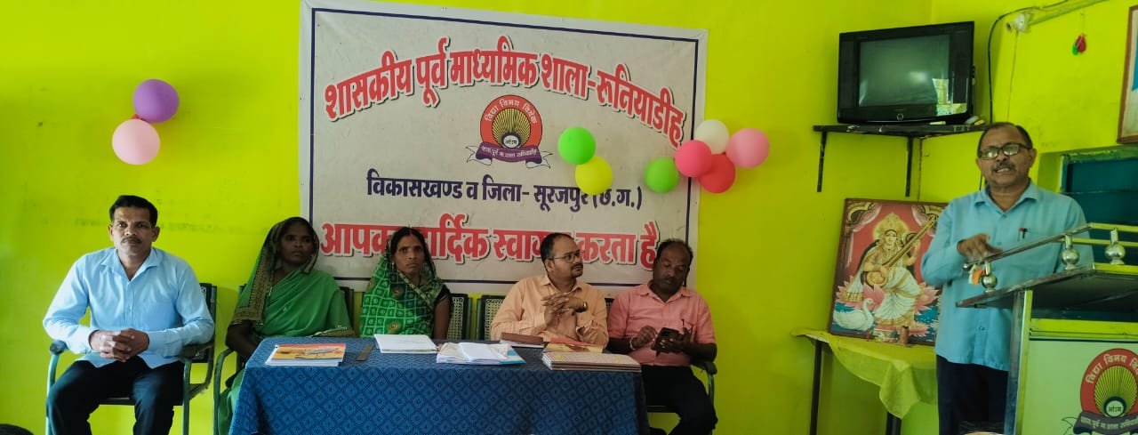सूरजपुर। बिश्रामपुर क्षेत्र के प्रथम बस्तामुक्त विद्यालय शासकीय पूर्व माध्यमिक शाला रुनियाडीह में सम्मान समारोह आयोजित किया गया। इस कार्यक्रम में मुख्य अतिथि इरफान अंसारी प्रदेश कार्यकारिणी सदस्य भाजपा अल्पसंख्यक मोर्चा रहे तो वहीं विशिष्ट अतिथि के रूप में श्रीमती एनवति राजवाड़े अध्यक्ष शाला प्रबंधन एवं विकास समिति, विजेंद्र लाल जायसवाल संकुल समन्वयक रामनगर, मो.नजीर आलम व मंसूर अंसारी उपस्थित रहे। कार्यक्रम का शुभारंभ मां सरस्वती की छायाचित्र की पूजन अर्चन के साथ किया गया। कार्यक्रम में छात्रा कु. फूलकुंवर आत्मजा श्री नकुल राम द्वारा 24वीं राज्य स्तरीय शालेय क्रीडा प्रतियोगिता अंतर्गत कबड्डी अंडर 14 मिनी बालिका वर्ग में सरगुजा संभाग का प्रतिनिधित्व करने पर सम्मानित किया गया।