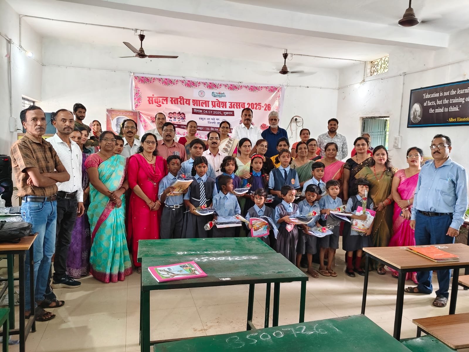 स्वामी आत्मानंद हिंदी माध्यम विद्यालय बिश्रामपुर में संकुल स्तरीय शाला प्रवेश उत्सव मनाया गया।