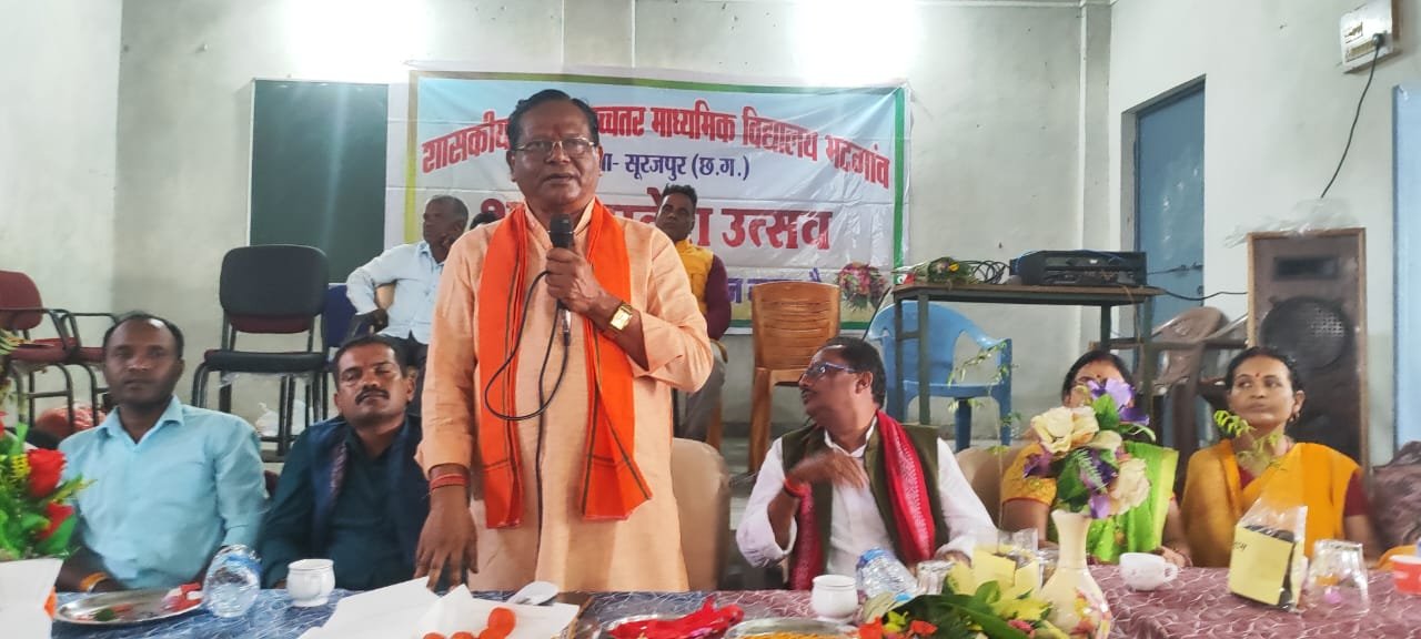 भटगांव। शासकीय उच्चतर माध्यमिक विद्यालय भटगांव मे शाला प्रवेश उत्सव एवं राष्ट्रीय सेवा योजना के अंतर्गत एक पेड़ मां के नाम पर वृक्षारोपण कार्यक्रम का आयोजन धूमधाम के साथ किया गया। कार्यक्रम की शुरुआत सर्वप्रथम सभी अतिथियों के उपस्थिति में मां सरस्वती, भारत माता एवं छत्तीसगढ़ महतारी के छायाचित्र पर पुष्प, हार, दीप प्रज्वलित कर कार्यक्रम की शुरुआत की गई। तत्पश्चात अतिथियों का स्वागत पुष्प गुच्छ एवं छात्रों द्वारा स्वागत गीत, सांस्कृतिक कार्यक्रम प्रेरणा गीत व राष्ट्रीय सेवा योजना के कार्यक्रम अधिकारी संतोष गुप्ता के द्वारा अतिथियों को पौधा भेंट कर स्वागत किया गया। कार्यक्रम के मुख्य अतिथि थे पूर्व गृहमंत्री रामसेवक पैकरा जो वर्तमान मे छत्तीसगढ़ राज्य वन विकास निगम बोर्ड के अध्यक्ष है ,अशोक कुमार सिंह भाजपा जिला मंत्री एवं एसएमडीसी अध्यक्ष, रमेश कुमार गुप्ता भटगांव मंडल अध्यक्ष , रामफल पैकरा उपाध्यक्ष नगर पंचायत भटगांव अहिबारन मानिकपुरी मंडल उपाध्यक्ष, विजय कुमार राजवाडे एसएमसी अध्यक्ष की उपस्थिति में नव प्रवेशी छात्रों को तिलक लगा मुंह मीठा कर पुस्तक प्रदान कर आशीर्वाद देते हुए प्रवेश दिया गया। कार्यक्रम को उद्बोधित करते हुए अशोक कुमार सिंह द्वारा छात्रों का अच्छे परिणाम व शाला की आवश्यकताओं पर प्रकाश डाला गया।
