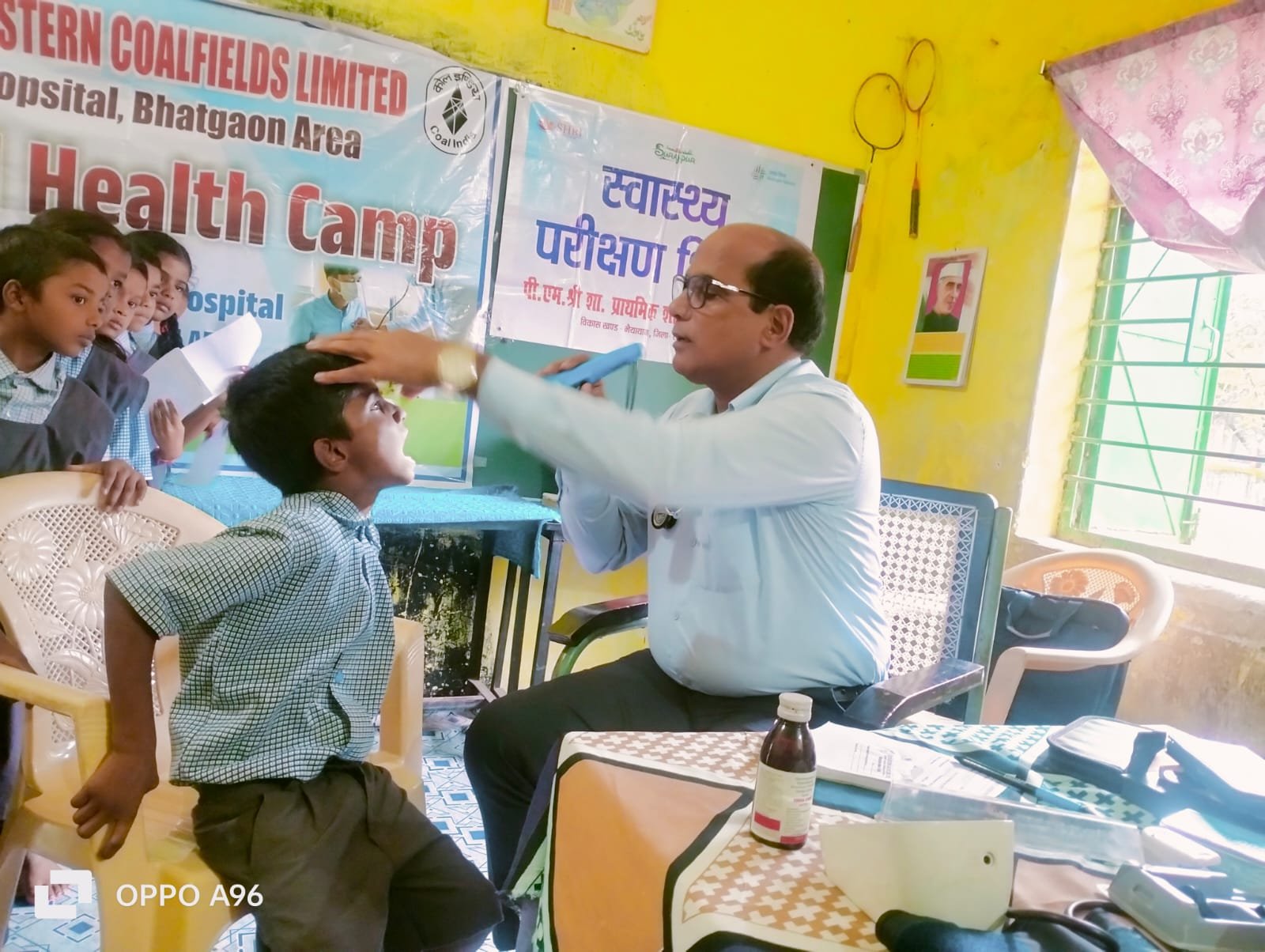 सूरजपुर। पीएम श्री प्राइमरी स्कूल भटगांव कॉलरी के आग्रह पर एसईसीएल के द्वारा स्वास्थ्य परीक्षण कैम्प आयोजित किया गया। स्वास्थ्य परीक्षण करने आए एस ई सी एल हॉस्पिटल के चिकित्सक डॉ.शिव गोपाल सिंह एवं स्वास्थ परीक्षण टीम का स्वागत विद्यालय के शिक्षकों का बच्चों के द्वारा किया गया। डॉ. शिव गोपाल ने उपस्थित सभी बच्चों का बारीकी से स्वास्थ्य परीक्षण किया। जिसमें उनके द्वारा बच्चों का नाक ,आंख गला , कान ,दांत एवं संपूर्ण शारीरिक स्वास्थ परीक्षण किया गया। बच्चों को आवश्यक दवाईयां तथा उचित परामर्श दिया गया। समस्या ग्रसित बच्चों के अभिभावकों से संपर्क कर उन्हें इलाज करने हेतु समझाइश दिया गया। आज स्वास्थ्य परीक्षण में चिकित्सक डॉ. शिव गोपाल के साथ साथ स्टाफ नर्स सि. सुशीला पॉल, लैब टेक्नीशियन राजेश शर्मा, फार्मासिस्ट अभिषेक गुप्ता, संध्या, रजनी , दुर्गा के साथ 08 अन्य स्टाफ उपस्थित होकर स्कूल के छात्र छात्राओं का बेहतरीन तरीके से स्वास्थ परिक्षण करने में मदद किया। इस अवसर पर बच्चों ने भी निर्भीक होकर अपनी समस्याओं को खुल कर बताया। स्वास्थ्य परीक्षण कैंप के बाद विद्यालय की हेड मास्टर श्रीमती कौशल्या ने आभार व्यक्त किया गया।