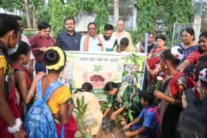 शाला प्रवेश उत्सव के अवसर पर एक पेड़ मां के नाम योजना के तहत विद्यालय परिसर में पौधारोपण का कार्यक्रम आयोजित किया गया और अतिथियों ने पौधारोपण कर पर्यावरण व वृक्षों को बचाने का संकल्प लिया।