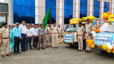 डीआईजी व एसएसपी सूरजपुर प्रशांत कुमार ठाकुर ने साइबर जागरूकता रथ को हरी झंडी दिखाकर किया रवाना।